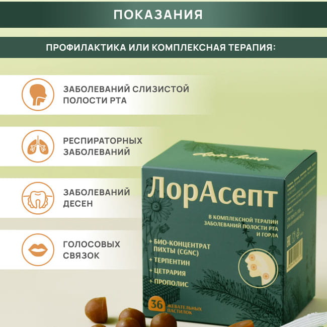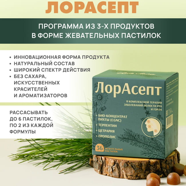 «ЛорАсепт» – программа из 3-х продуктов натурального состава в уникальной форме жевательных пастилок.